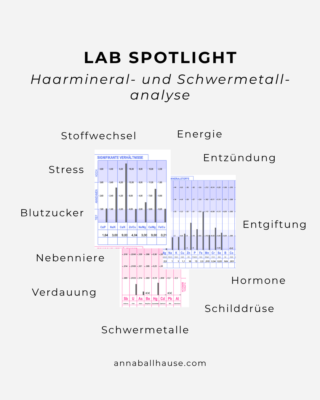 - Haarmineral- und Schwermetallanalyse zur Einschätzung von Entgiftung, Nährstoffverhältnissen, Energieproduktion, Hormonen und Belastungen – Wert über 150 €